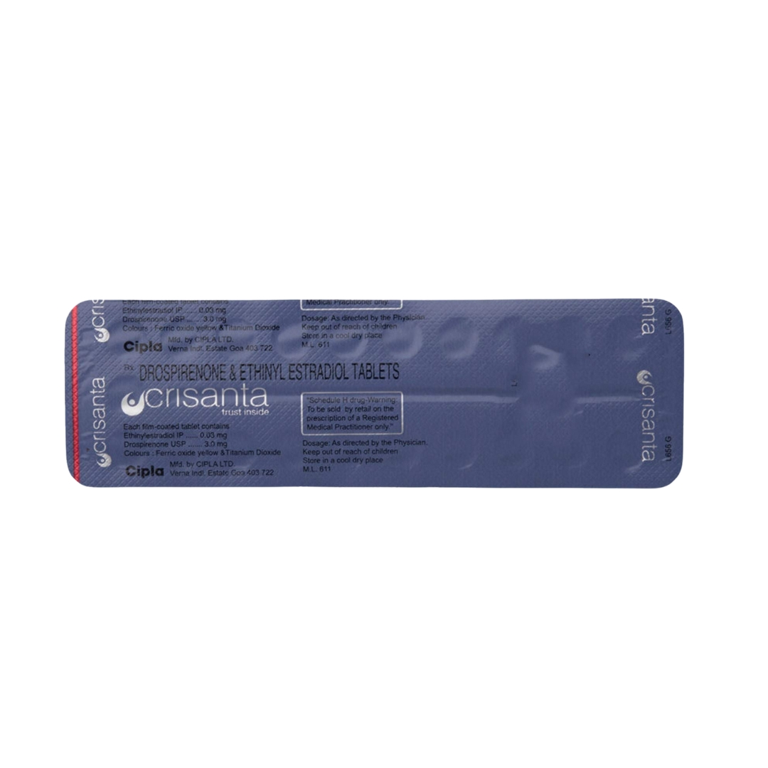 Crisanta Tablet is a combination of two medicines used for contraception (to prevent pregnancy) and in the treatment of irregular periods. It helps to prevent the release and fertilization of the.